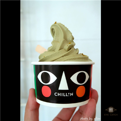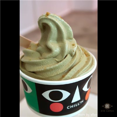 點了開心果霜淇淋 & 春玉蘭綠茶, 霜淇淋份量比超商的小許多, 質地偏水偶有冰晶感, 開心果口味是奶味大於開心果, 味道單一較甜膩, 還好有先見之明點無糖綠茶做搭配, 不然可能吃不完