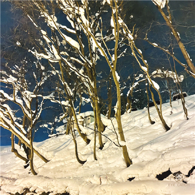 就這樣下著大雪,我們摸黑找飯店,明明晚上七點,氣氛卻像世界靜音+關燈。