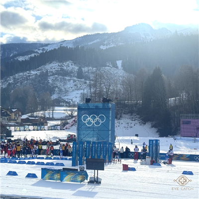 它像滑雪在雪地留下的自由痕跡,也像滑冰刀鋒劃過冰面的流線;不對稱的筆觸象徵每個人不同的生命軌道,卻在同一舞台上交會。