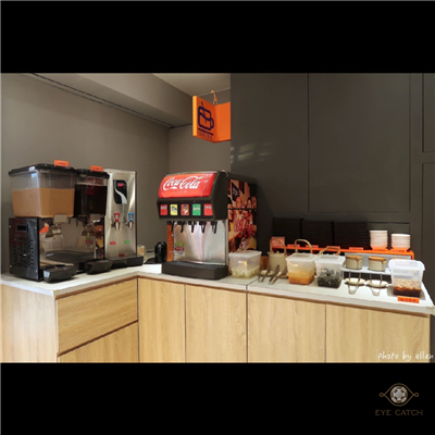 全黑色好適合我的tone調(笑), 自助式餐檯有飲用水紙巾餐具等