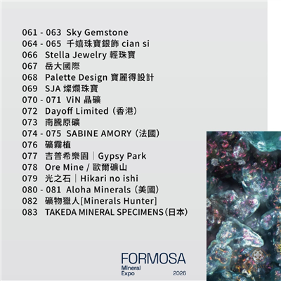福爾摩沙礦物博覽會可謂業界指標級的礦物寶石專業展會,論參展攤位數量與礦界專家陣容,都是給展客最頂規的內容。