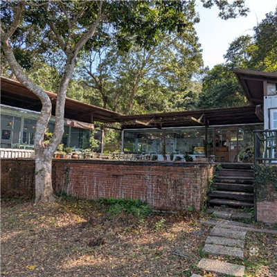 一進水漾石門就是停車場,再進去就是小中庭,三面都是有座位的廳堂,西面則是個水池,正對著湖,景色很美。 餐廳在半山坡,離湖面其實還挺遠的,有階梯可以再稍微走下去一些些。 環境整潔、廁所也很乾淨,感覺不錯。