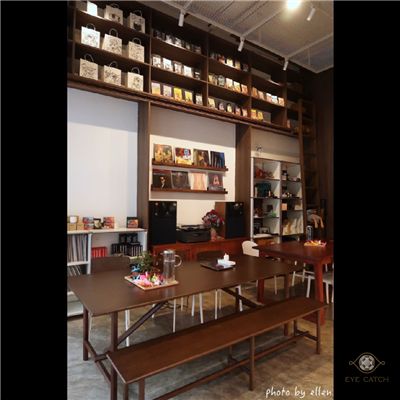 中間樓梯往地下室走下去, 沿途看到櫥窗餐具器皿是選物店商品, 四間店舖最大特色為完全開放式沒特別劃出個別空間卻能清楚知道界線, 地下室四分之三屬於選物咖啡店, 角落四分之一為花店