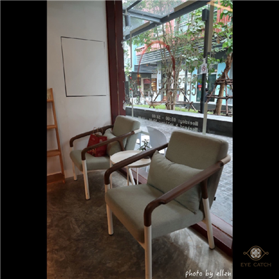 途經轉角白色外觀咖啡店覺得可愛, 恰好有半小時空檔, 決定進去探探! 裝潢風格小清新, 空間不算非常大但蠻寬敞, 約20個座位部分有插座, 吧檯底下漸層綠磁磚讓整體設計帶點靈動感, 不單調