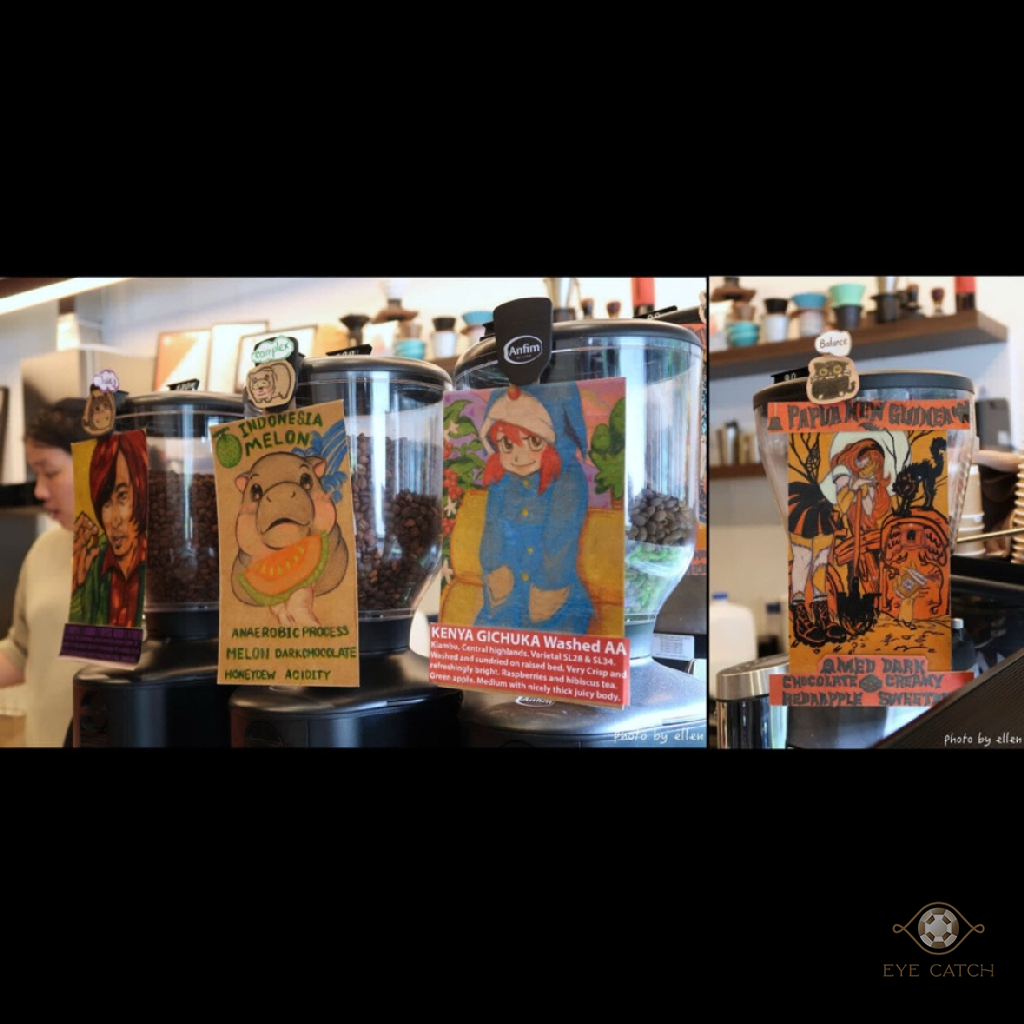 咖啡豆款風味可參考, 考慮當天心情選中間那款印尼蜜瓜, 仔細一看原來所繪圖案和風味相呼應, 實在有趣, Indonesia Melon (complex)使用厭氧處理, 主要風味是蜜瓜與黑巧克力, 拿鐵的奶泡不算細緻但與咖啡融合得還不錯, 首當其衝是蜜瓜香, 接著焦苦帶酸的黑巧克力蹦出來