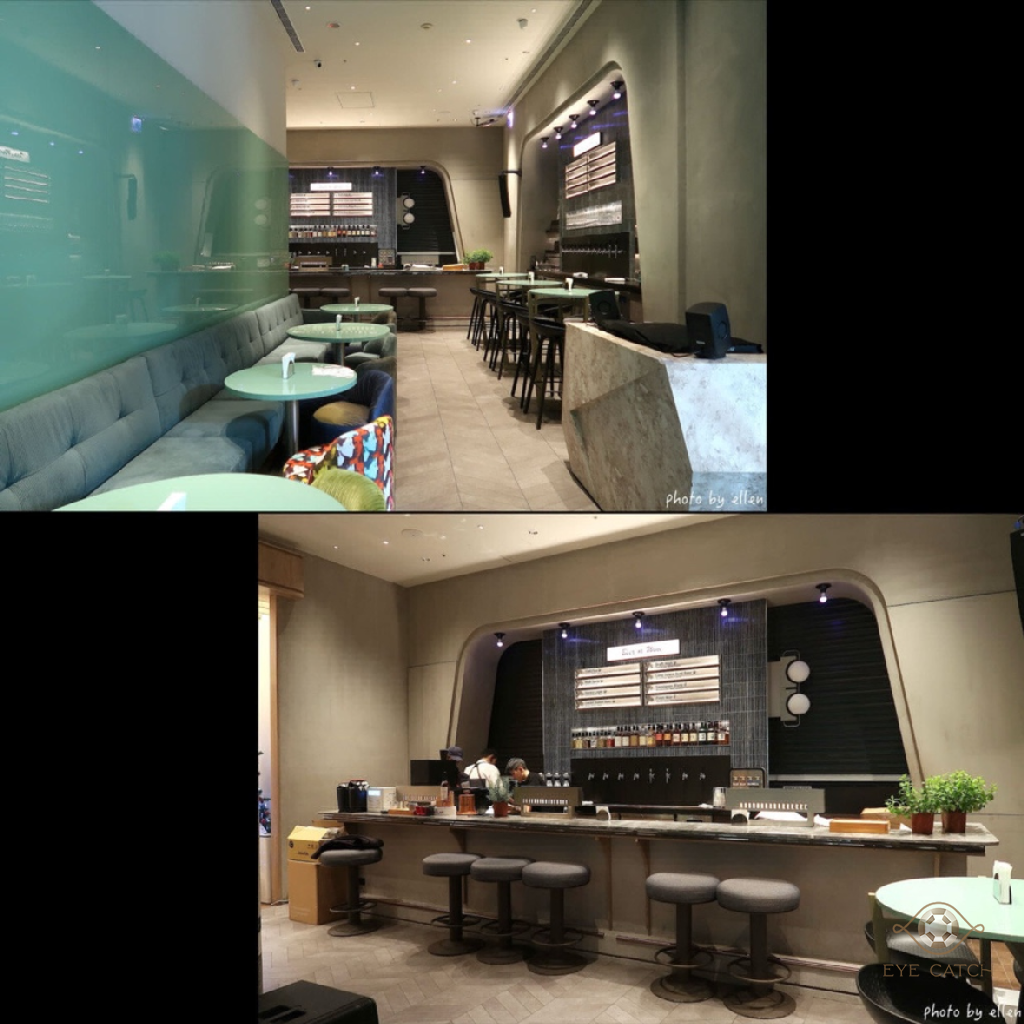 途經轉角白色外觀咖啡店覺得可愛, 恰好有半小時空檔, 決定進去探探! 裝潢風格小清新, 空間不算非常大但蠻寬敞, 約20個座位部分有插座, 吧檯底下漸層綠磁磚讓整體設計帶點靈動感, 不單調