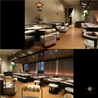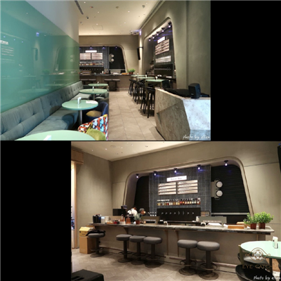 兩層樓, 一進門來不及欣賞便被帶到二樓座位區, 外觀看起來現代, 裡面裝潢意外可愛帶點南法風情, 半圓弧型類包廂座位小有隱密感, 只是空間比外觀小許多~ 後來去上洗手間才發現原來二樓有三種不同風格的用餐區, 皆具特色