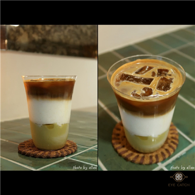 朋友推薦茶卡布奇諾, 不是單純茶加奶泡而是真實卡布奇諾咖啡加茶, 店家特調之一, 茶與咖啡兩者平衡得很好, 有種像在喝有咖啡的阿薩姆奶茶, 不完全是奶茶也不完全是咖啡, 剛剛好介於兩者之間, 茶香與微苦的咖啡挺搭, 柔和淡雅