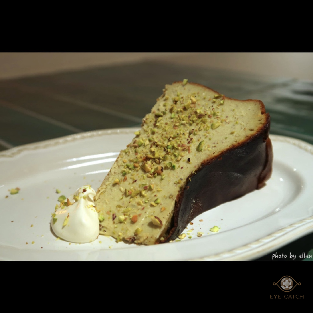 我點了酪梨布丁拿鐵和開心果巴斯克當下午茶, 剛好都是綠的! 咖啡的苦加上奶香和酪梨特有的味道, 布丁讓拿鐵質地變得略稠, 濃醇可口! 開心果巴斯克尺寸不小, 一人獨享十分過癮, 滑順綿密含在嘴裡入口即化, 唯一就是上面那層焦皮太乾, 其它都好 ;)