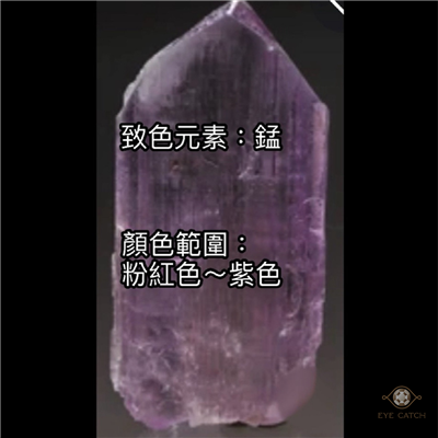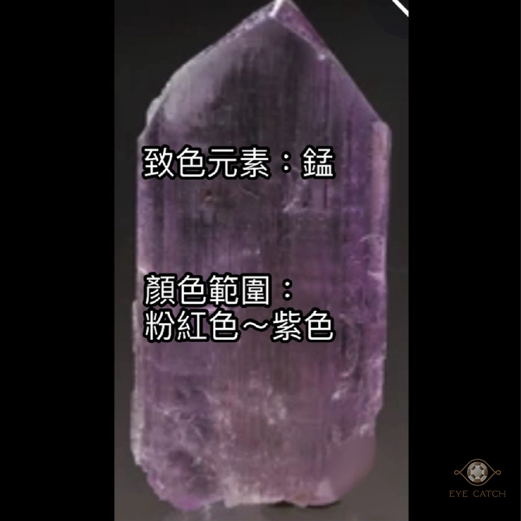 紫鋰輝石在1902年用Tiffany首席寶石學家喬治·弗雷德里克·坤斯的名字來命名,紫鋰輝石又稱為孔賽石,它的致色來源是含有錳元素,顏色範圍從粉紅色到紫色