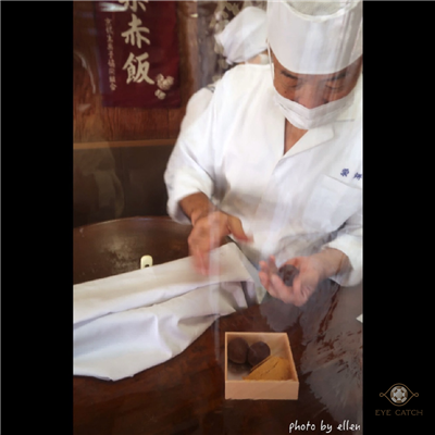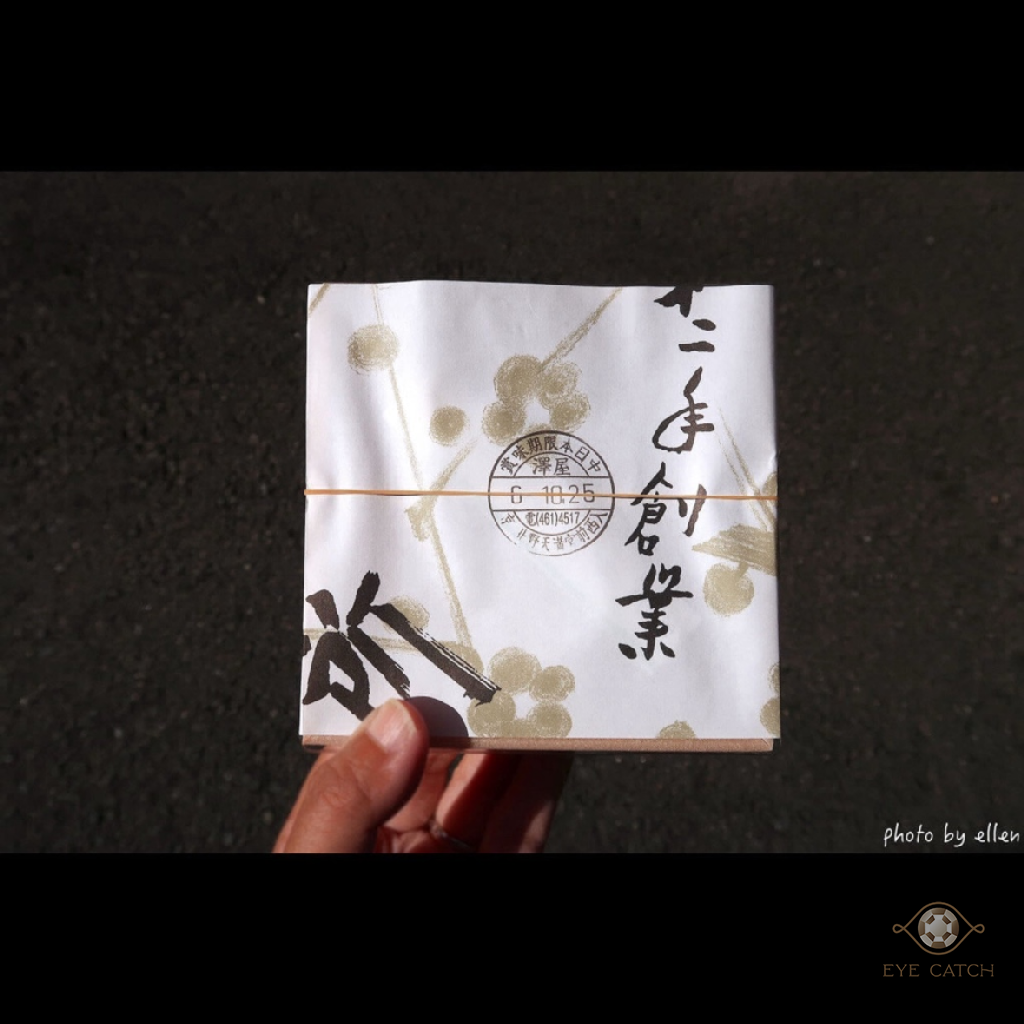 客人下單後立即製作, 才剛口頭下單沒想到老師傅動作這麼快, 付好錢已差不多做好, 根本來不及拍製作過程 XD 據說澤屋目前已傳十三代, 下午兩點前會賣完, 想買要趁早! 店員拿給我時叮囑要平放, 今天內要盡快吃完