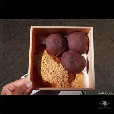 能理解為何當日要吃完, 因為麻糬口感最佳, 還有黃豆粉沒多久邊緣已顯潮, 皆會影響風味, 我選三個紅豆+兩個黃豆粉, 紅豆捏成圓, 黃豆粉是長條, 小米製成的粟餅柔軟Q嫩, 紅豆沙綿密細緻甜度中等, 黃豆粉香氣足, 不單純原味而是帶有細膩的甜, 兩者我都喜歡, 可惜賞味期限只有一天, 不然真想帶些回台灣給家人們嚐嚐
