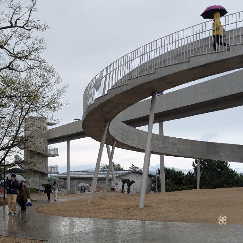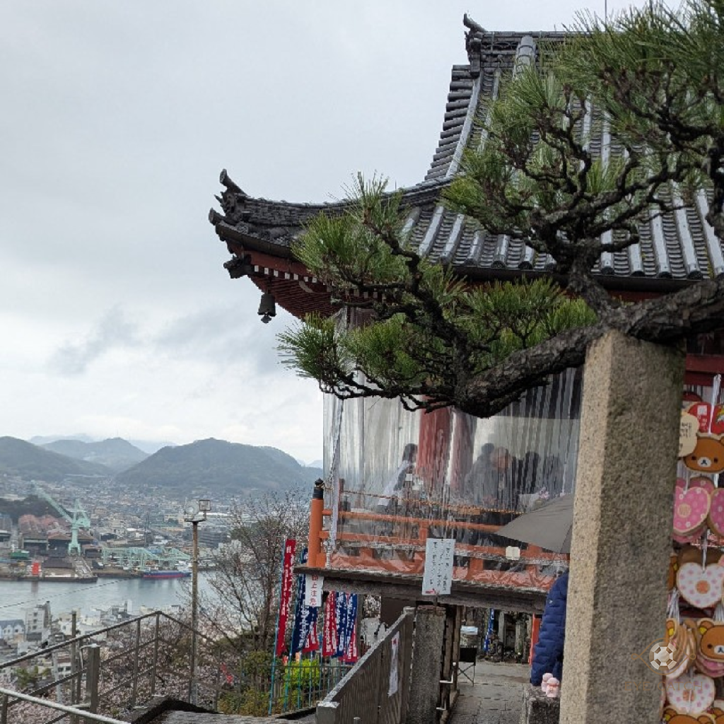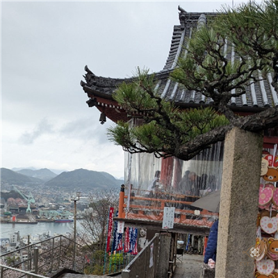 千光寺可說是尾道最著名景點。 除了本身是在西元806年就建寺的古老寺廟外,包含纜車、鼓岩、展望台及山頂一大片步道的千光寺公園可以散步、賞花及瞭望整個尾道。 公園步道可以通到安藤忠雄建築風格的尾道市立美術館,下山也可以選擇走「貓之細道」,看貓貓們尋幽訪勝,半山腰小道裡有幾家古色古香的咖啡廳可做休憩。 下山途中經過天寧寺的五重塔,也值得一觀。 今天細雨綿綿,怕地面濕滑,就選擇搭纜車而不走小道下山了。