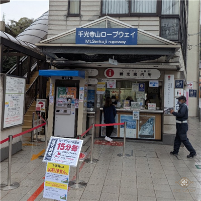 山頂的步道算是環狀的,從山頂沿著步道要往下走一段就會到建在山邊的千光寺,雖然腹地不大但朱紅色的本堂與袖珍的格局讓人感覺很輕鬆親切。