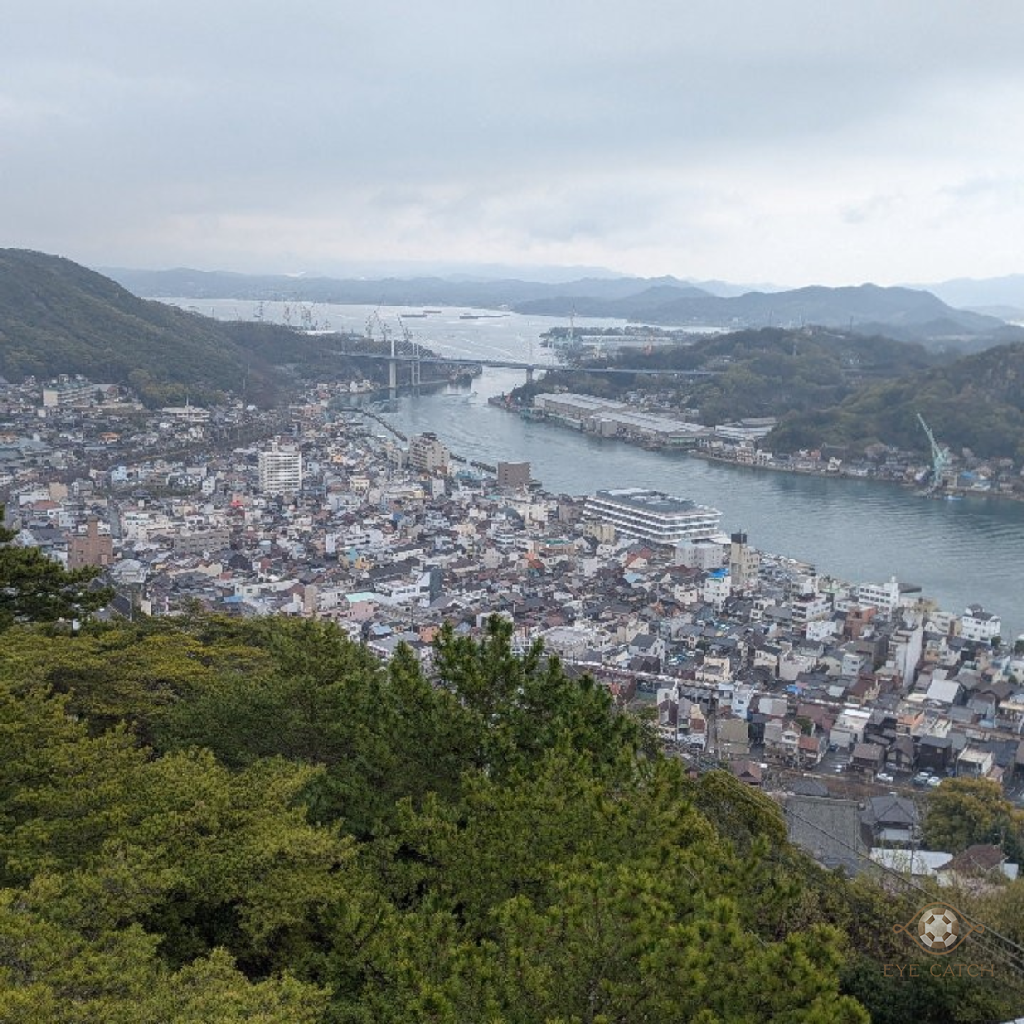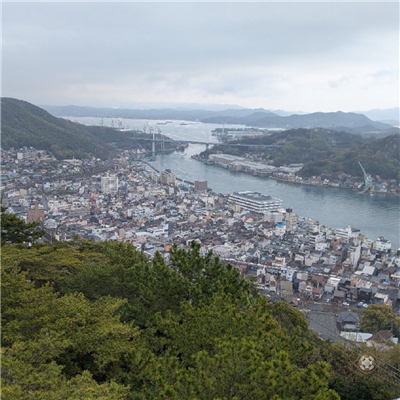 上山會先看到艮神社的大樹。 下車後走出車站馬上就到展望台。 在此可以一覽無遺地欣賞尾道夾山靠海頗具有層次感的景觀。 市區旁的「大河」其實是本州島與對面陸地向島之間的一個小海峽,左手遠處「出海」處也還是瀨戶內海左手揣右手。