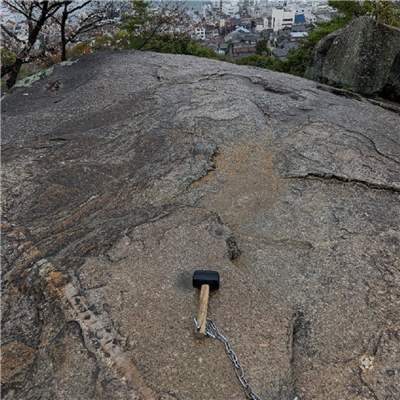 往回山頂的步道走會經過鼓岩,可以上去用橡膠錘子敲一敲聽聽鈍鈍的聲音,但鼓岩上完全沒護欄,要小心。