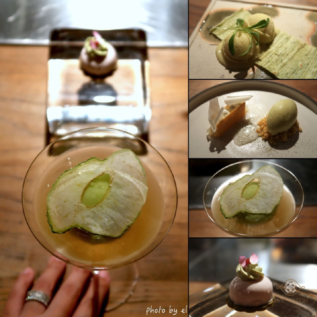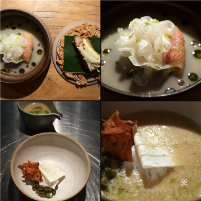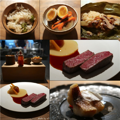 餐點有: 開胃菜(豆漿奶酪, 金杯, 干貝松露可麗露), 鰤魚, 鮑魚羊肚菌南北杏雞湯, 螢烏賊塔, 鰻魚, 鹿兒島A3紐約客&高山烏龍茶北海道七星米蒸飯, 冬瓜仙草稻草, 無咖啡因花草茶, 艾草冰淇淋, petit four