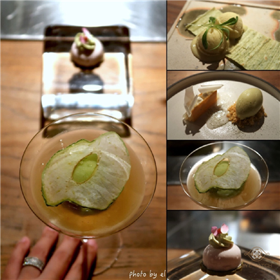 我被安排在側邊完全看不到廚師們做料理的圓桌, 飲料在中島區準備和料理檯分開, 新座位設置的優缺點: 以前服務生做介紹時隔得有距離聲音太小總聽不太清楚, 現在似乎好一點, 不過改成餐桌形式方便聊天等於聚餐說話的人變更大聲, 比以前吵蠻多