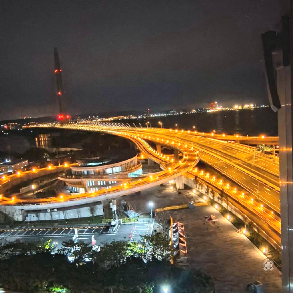 等到夜幕降臨,燈光點亮,整座橋變成一條流動的光河。我站在家陽台遙望大橋,看著車流像星光一樣延伸出去,這絲滑感,好像人生的旅途也可以這麼絲滑順遂,哈哈。