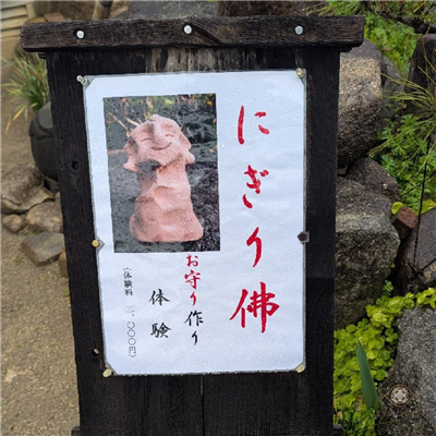 寺內有用竹籤雕塑黏土小佛像的項目。 給你一塊黏土,竹籤及一碗水來自已手動做佛像。 看貼廟牆上的一些活動照片都是跟寫御朱印同一個人,看來是由住持一個人經營的。 不知這種一人經營的寺廟在日本算是好的生意還是不好。