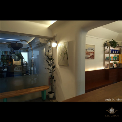 磨石子地板與翡綠色吧台搭配木頭與金屬家具塑造出獨特混搭風格, 牆上投放的影片是懷舊卡通, 不放聲音只讓畫面跳轉, 讓氛圍增添俏皮趣味, 平日下午人不多蠻幽靜, 低消每人一杯飲品, 只收現金, 平日限時3小時, 假日2小時, 滿座的話無論平假日一律限時90分鐘, 寵物友善空間