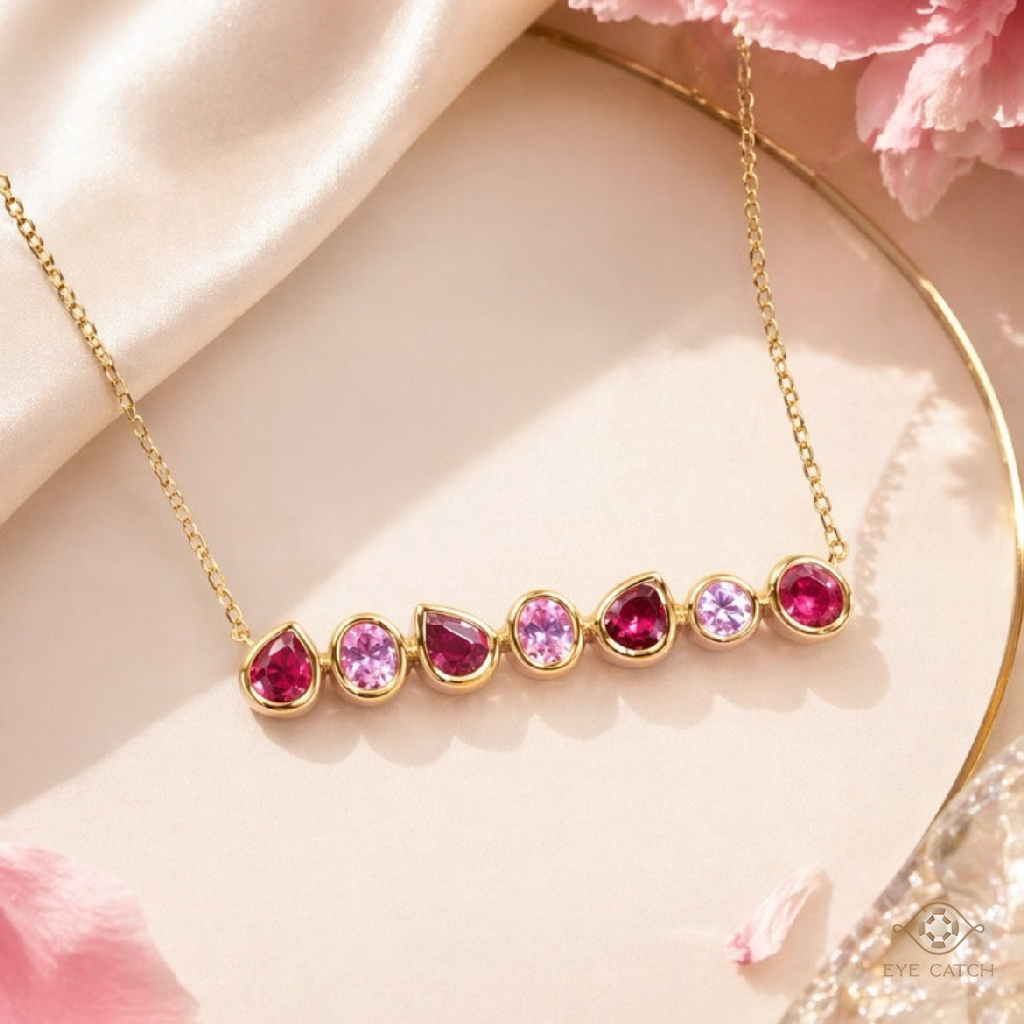 絢麗的紅寶石+粉剛項鍊,是我們對媽媽最真摯的獻禮。寶石錯落有致地排列,宛如春日里盛開的花朵,繽紛多彩🌸