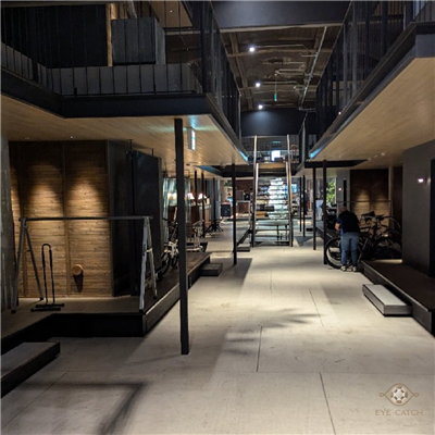Hotel Cycle可說是為了單車運動而生的旅館,連名字都叫cycle。 旅館佔據了U2的西半邊,有兩層樓的客房。 旅館內部也是YouTube的工業風,每個房間外都有車架放車。 除了可以直接牽車辦理入住的櫃台外、維修工具柱(維修工具、簡易駐車架和打氣筒整在一起)以及單車租賃服務都有提供。