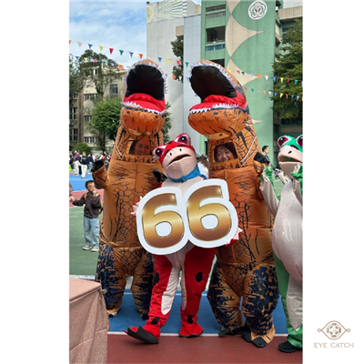 他走出候選人的氣勢! 今天是Thomas的校慶,學校 66 歲生日,整個校園從一早就熱鬧到不行!恐龍、青蛙等吉祥物全員到齊。孩子們在操場上跳舞、揮旗,充滿朝氣與活力,每一個笑容都亮得像太陽。我這個當媽的尖叫聲完全忍不住,一直在旁邊大聲加油、拍照、感動。66 歲的校慶,滿滿都是成長的快樂與回憶。 瞧,我的尖叫聲讓Thomas走出當選後謝票的氣勢🤣🤣Mako 1 -