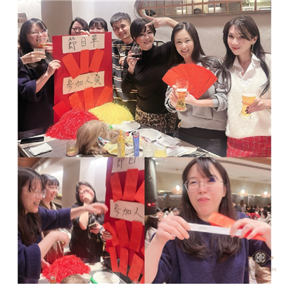 尾牙三連擊 今年尾牙我真的笑到腹肌痛,我們公司的尾牙也讓現場氣氛熱烈👏 第一關【白帥帥】心算數字猜猜猜,規則超狠:3秒內沒打出答案,直接被對方吹麵粉伺候。全場變考場,下一秒變災難現場,參賽者邊喊「我剛剛真的有算!」⋯裁判沒聽到就不算啊🤣 第二關【粉墨登場】拿毛筆直接在臉上或手上畫,然後要猜成語。畫得像國畫也就算了,有人畫到像符咒,猜的人還很認真:「這是⋯小真,為什麼你的平平安安跟大吉大利都是一樣的圖?🍎🍊⋯這兩個用毛筆畫起來就是一樣啊,哈哈哈😆」 最後壓軸【打腫臉充胖子】穿上超級胖胖衣,唱著《恭喜恭喜》跑全場,還要每桌逐一拜年。跑起來像福氣彈跳球,全場笑到翻桌👍Mako 2 -