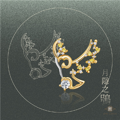 靜夜展翼~鑽石胸針 〈淺月〉以展翼的台灣保育類動物-草鴞為設計靈感,象徵在靜夜中仍保持清明與生命力。 翅尖鑲嵌的黃寶石與白鑽,如淺月下四散的微光,描繪出「在最安靜的時刻,悄悄綻放力量」的寓意。 整件作品以 14K/18K 黃金手工彎塑,羽翼線條以細緻立體雕酥,彎度自然、充滿動勢。 主鑽以極簡抓鑲托住,像是貓頭鷹目光中的月光之心;而鑽石的排列方式採「星閃點綴」,大小層次交錯,使光影更璀璨。 這是一件把力量藏在優雅中的作品:既靜,也有向上飛升的意志,彷彿在半月光下,生命正在展開下一次飛翔。純真鑽石 3 -