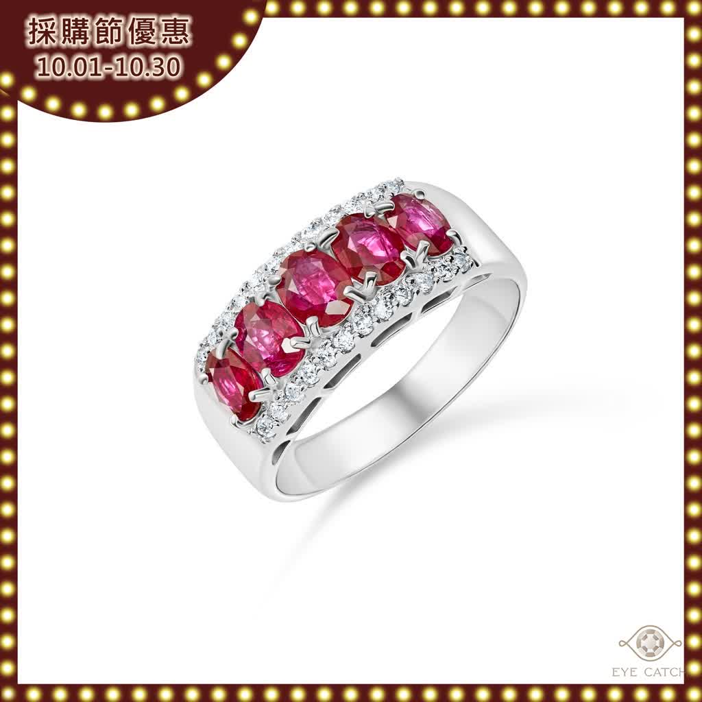 紅寶石5顆總重: 1.24ct / 材質:18K金 / 戒圍: #13