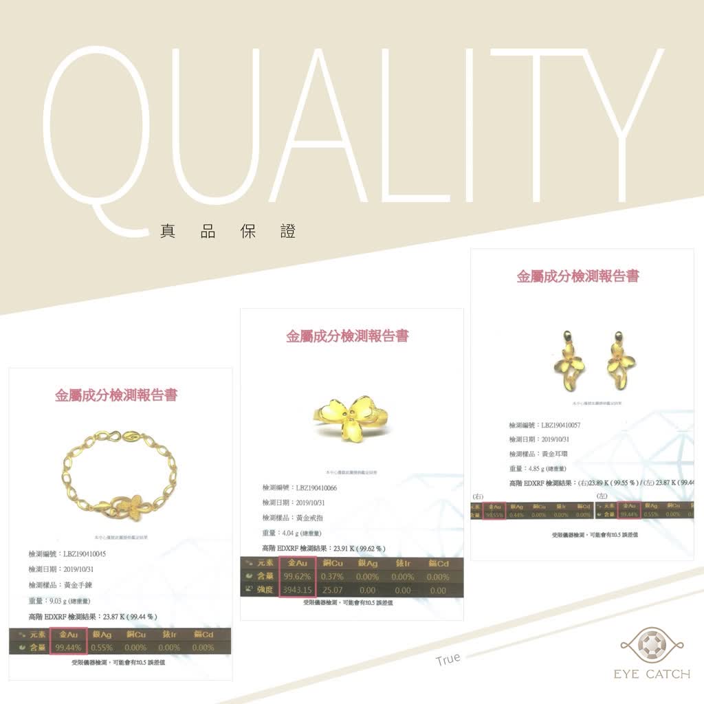 純足黃金手鍊兩條、純足黃金耳環一副、純足黃金戒指一枚