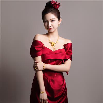 花朵與枝葉的完美結合,倆倆相應而生,相知相惜,足金的尊爵氣勢強化婚宴排場視覺效果,讓女主人艷冠群芳,大富大貴更加喜氣,欣欣向榮迎接幸福家庭的到來,祥獅獻瑞福祿全,花開並蒂相貌端