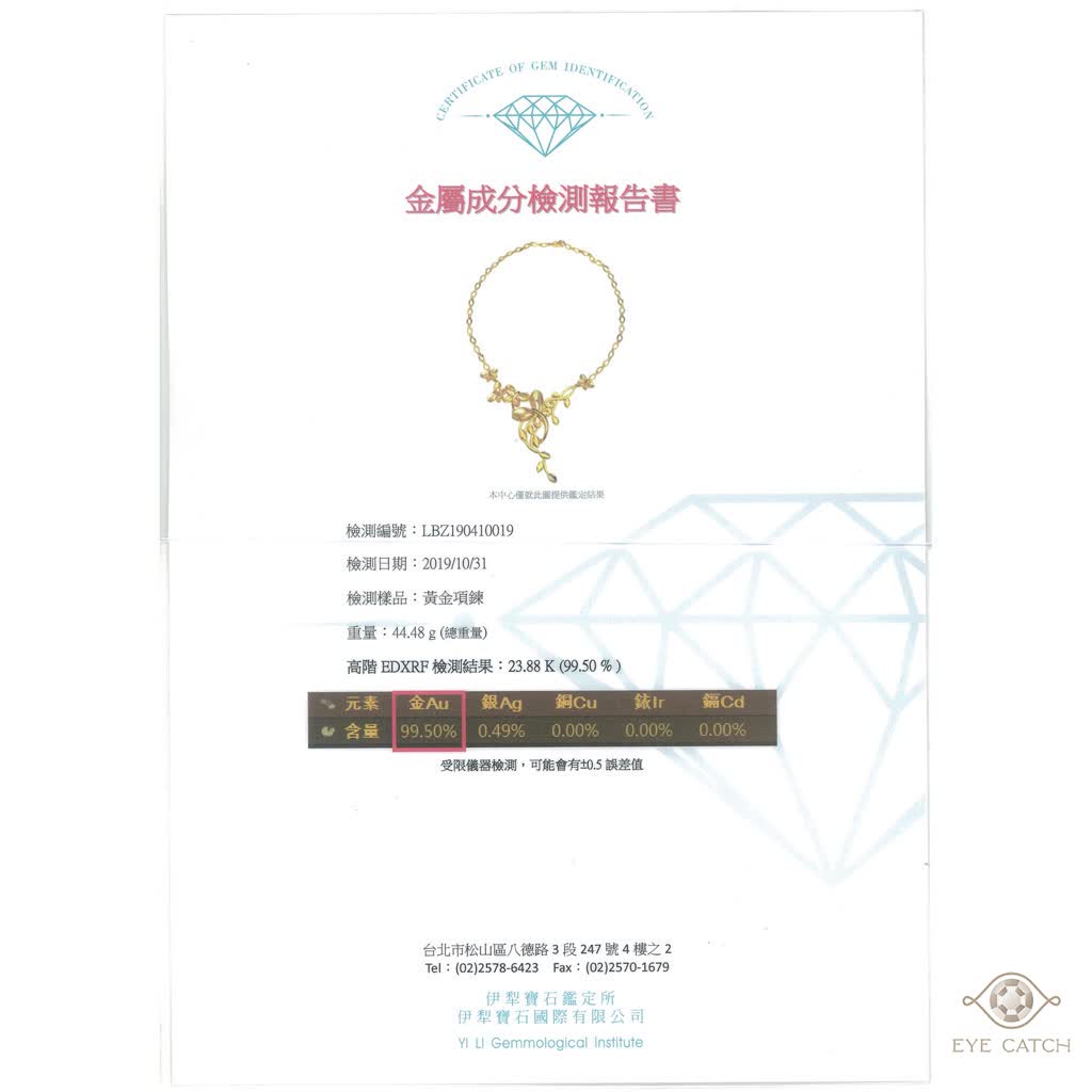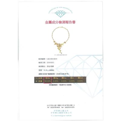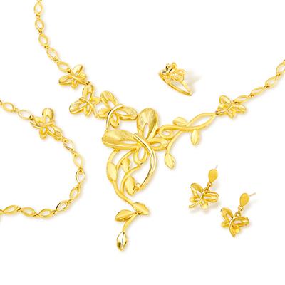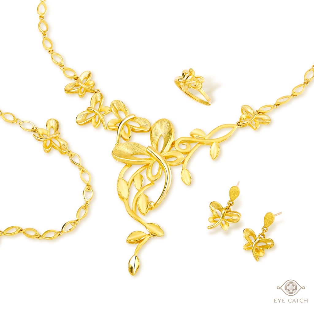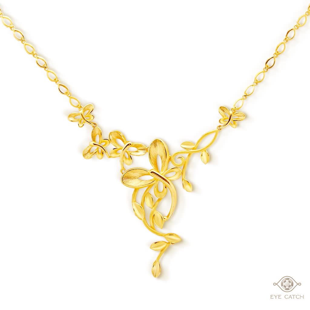 以豪華氣派、華麗的傳統中國宮廷裝概念設計,顯現年輕女性高貴與青春氣息,願你們的愛情生活,如同這尊爵不凡的純足金項鍊ㄧ樣,由幸福的蝴蝶綿延繁茂,愛似鴛鴦戲水,情比蝴蝶雙飛