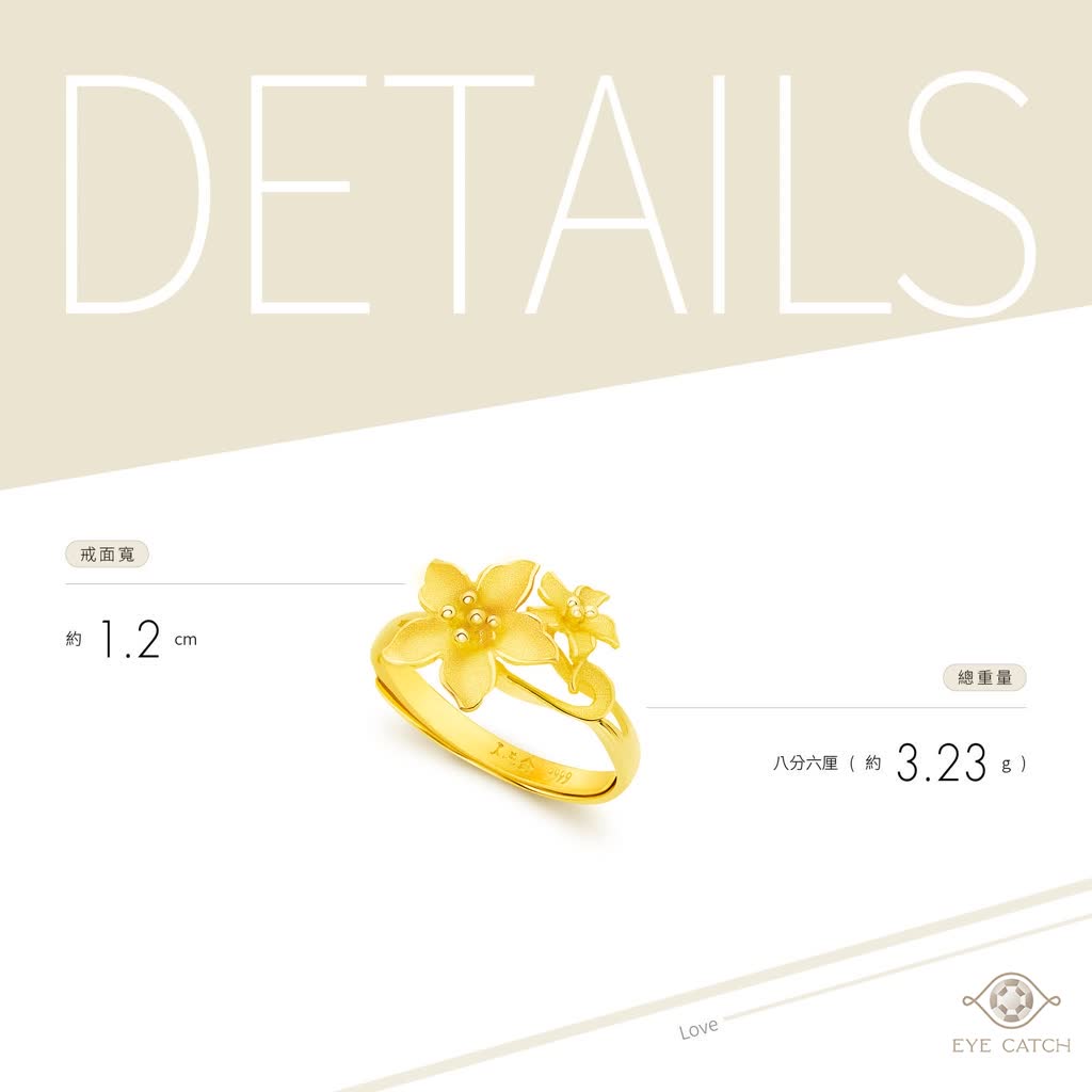 以鏤空花朵為造型,富有線條感,鏤空讓花兒看起來更輕巧,彷彿像風中搖曳的桔梗花,代表永恆不變的愛