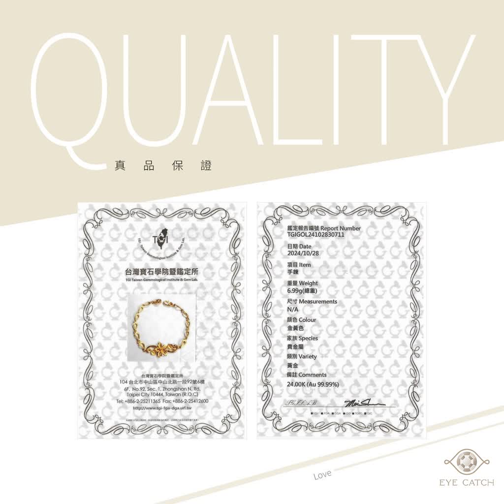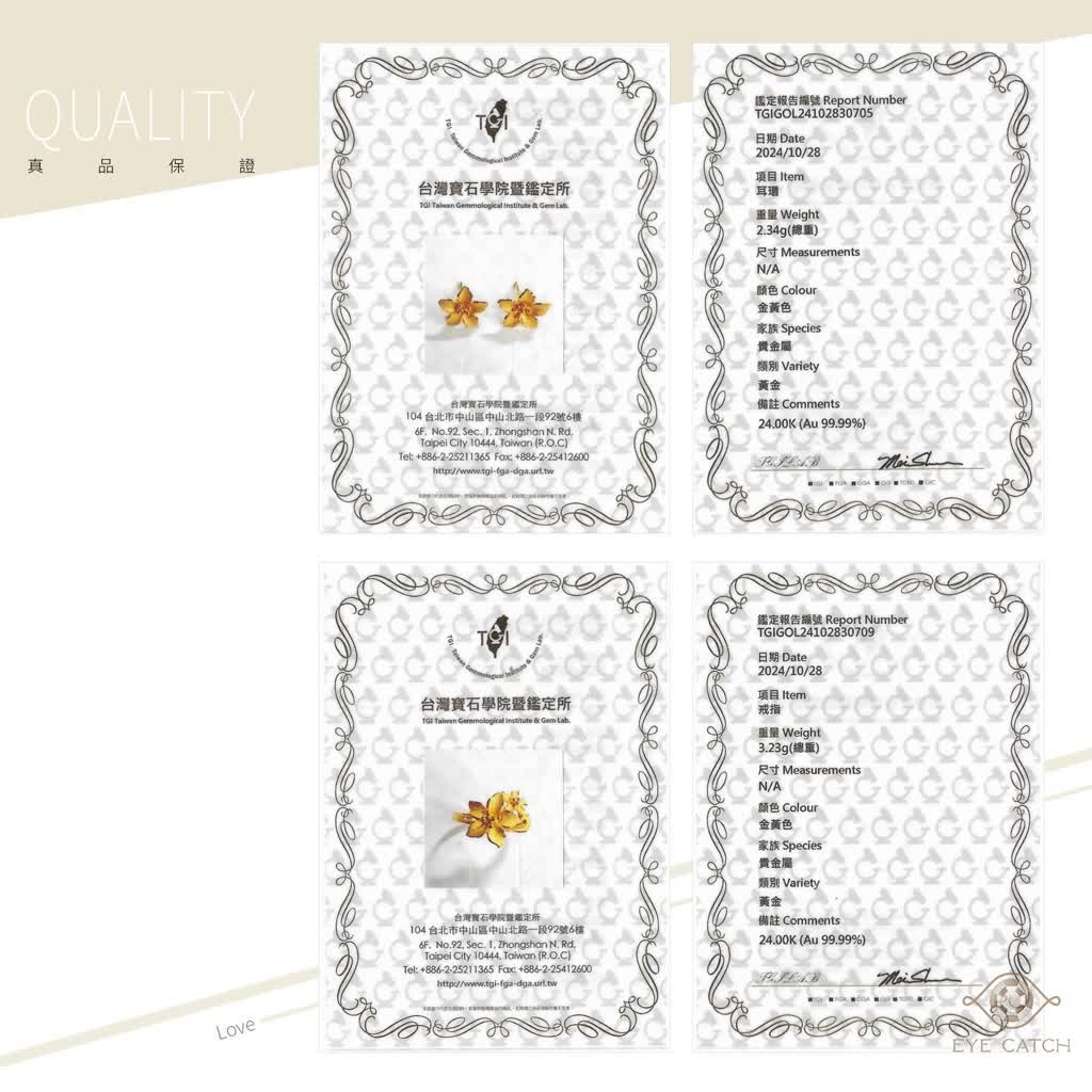 純足黃金手鍊一條、純足黃金耳環一副、純足黃金戒指一枚