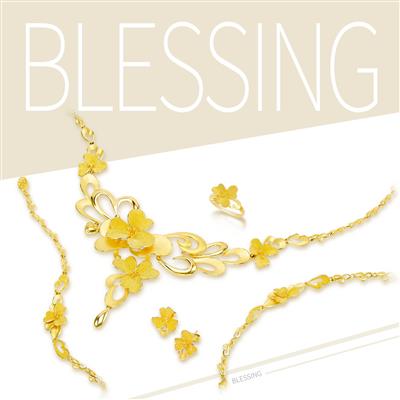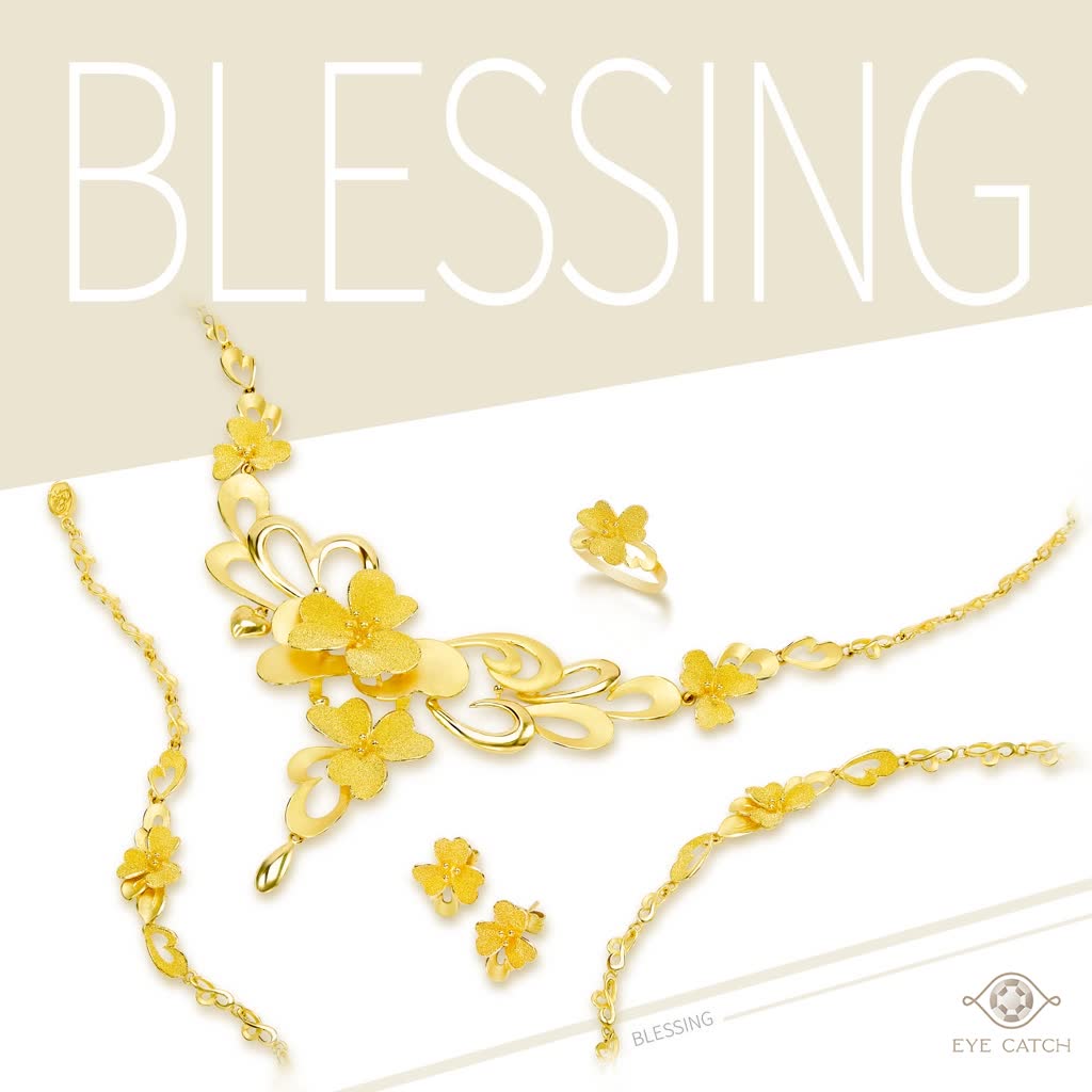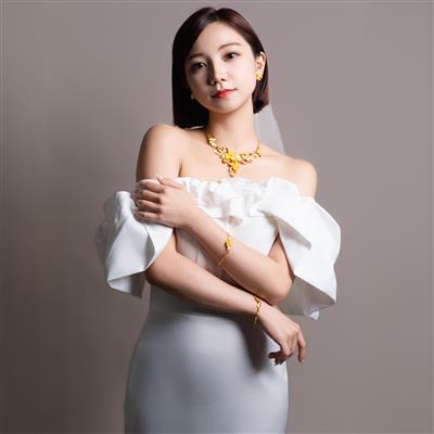 纏綿相繞而生的愛心象徵著你們同德同心的美好姻緣,黃金的富貴增添了尊爵與浪漫的華貴感,迎賓、敬酒、謝客,都可讓親友們近距離清晰看到黃金襯托出來的新娘的高貴氣質,多環是中國皇宮貴族與大家閨秀高貴的表現,願你們用愛纏繞著對方,共同分享今後的苦與樂