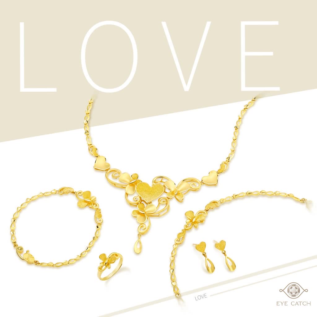 蝴蝶圍繞著愛心飛舞,就像蜜蜂看到花一樣的甜蜜,蝴是福的諧音,代表福氣連連,福氣綿延不絕,愛情同樣餘韻悠長