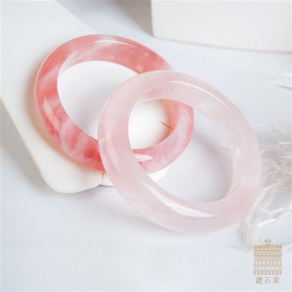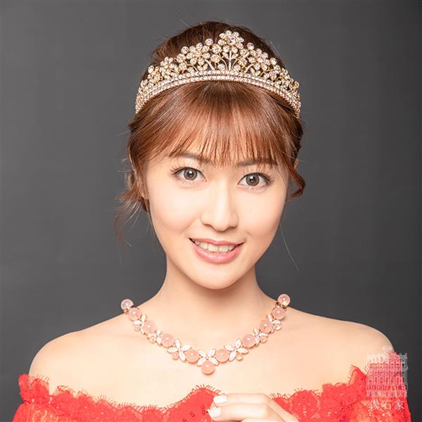 天然粉嫩色水晶與草莓水晶象徵愛情,吸引美好姻緣,增進美好圓融,雙環是中國皇宮貴族與大家閨秀高貴的表現,手環能修飾手指看起來修長,且手態會較柔軟,在喜宴現場的舉手投足更性感動人,搭配精緻k黃皇冠,堪稱完美新娘~