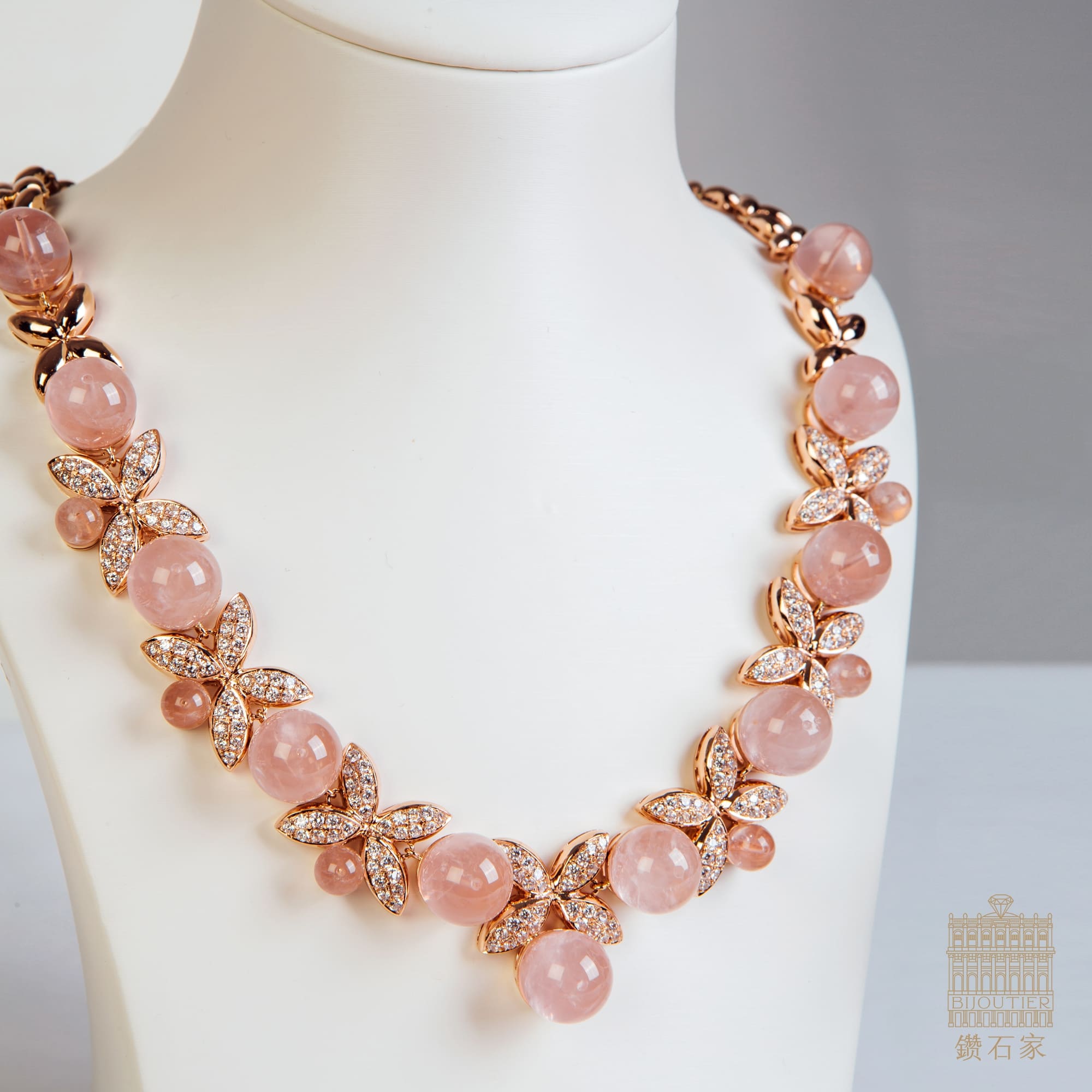珠寶套組:巴西天然星光粉水晶玫瑰金套鍊